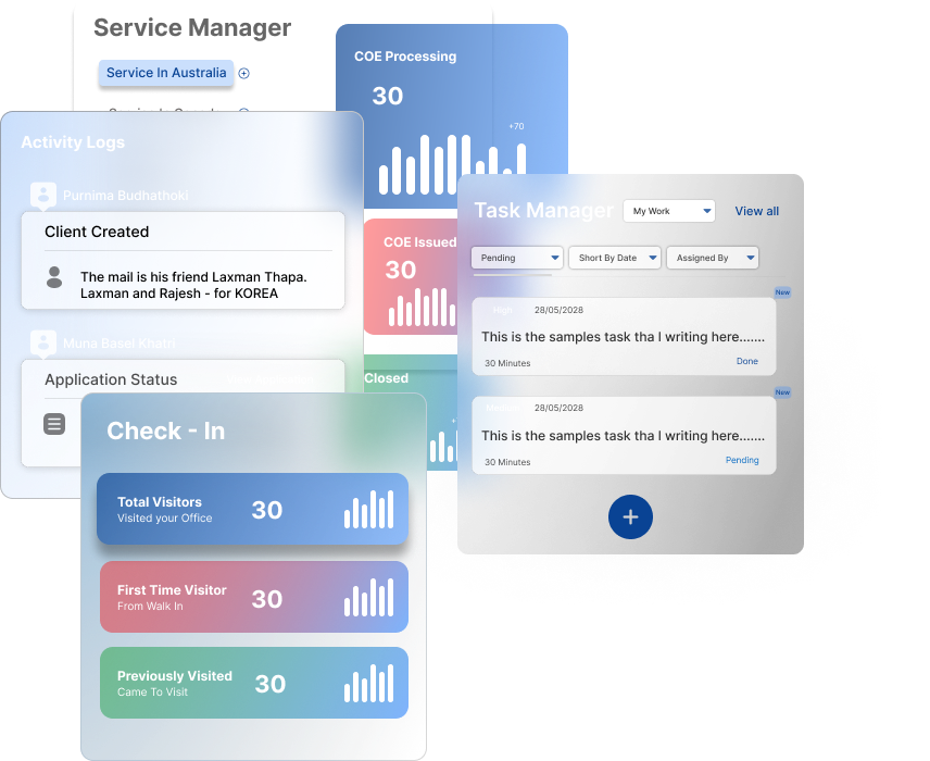 Stay organized and boost productivity with our CRM’s task assignment feature. Seamlessly assign andmonitor tasks across your team, ensuring projects run smoothly and deadlines are met. Manage yourbusiness with ease and clarity.