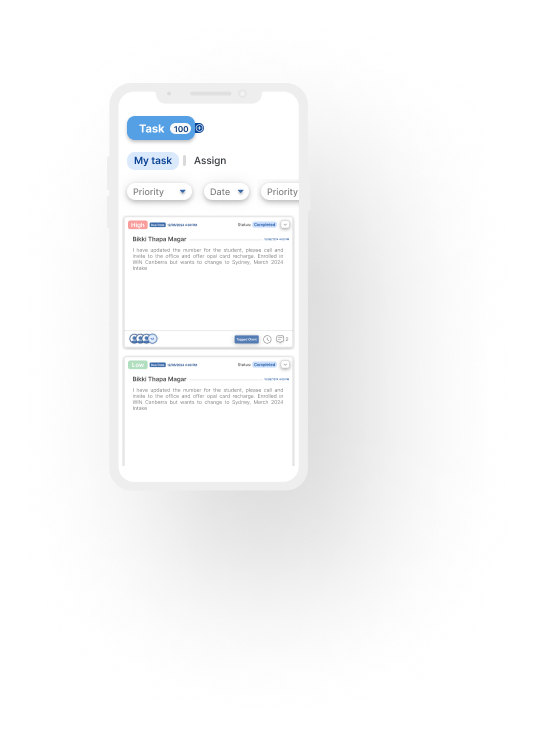 Stay organized and boost productivity with our CRM’s task assignment feature. Seamlessly assign andmonitor tasks across your team, ensuring projects run smoothly and deadlines are met. Manage yourbusiness with ease and clarity.